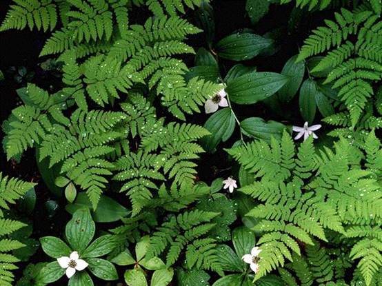 في هذا الشكل تنقسم الأوراق لفروع تشبه شكل الورقة الكاملة، وكذلك تنقسم الفروع إلى فروع أخرى تشبهها |