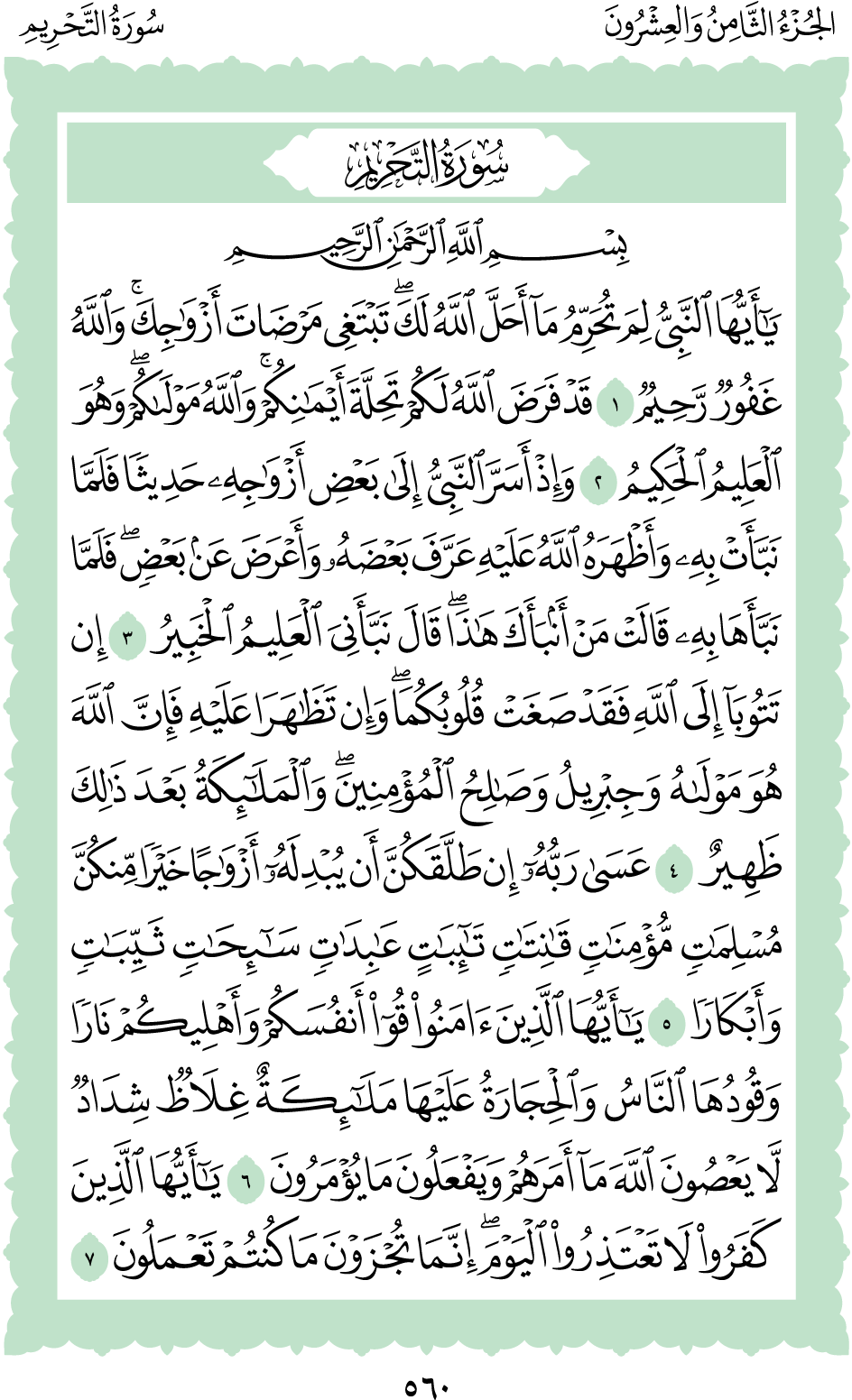 المكتبة الأكبرية: القرآن الكريم الصفحة: (560)