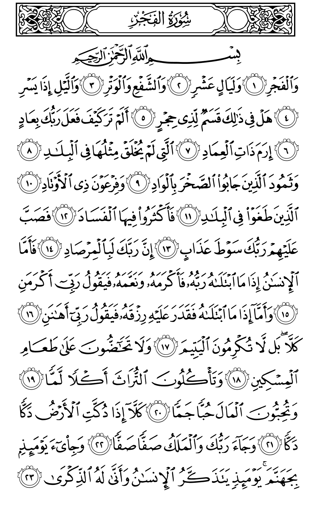 سورة الفجر (القراءة بصوت القارئ محمود خليل الحصري)